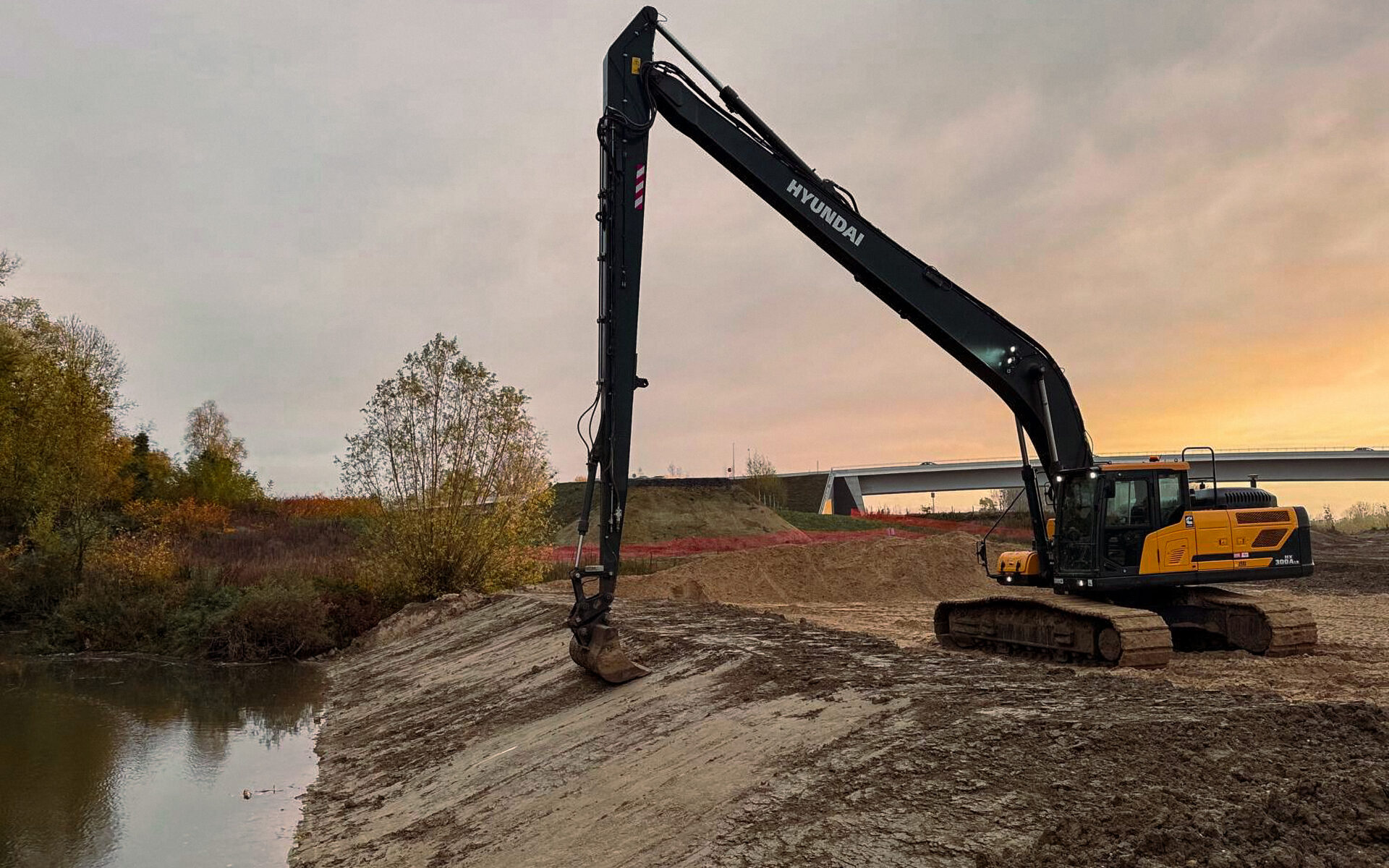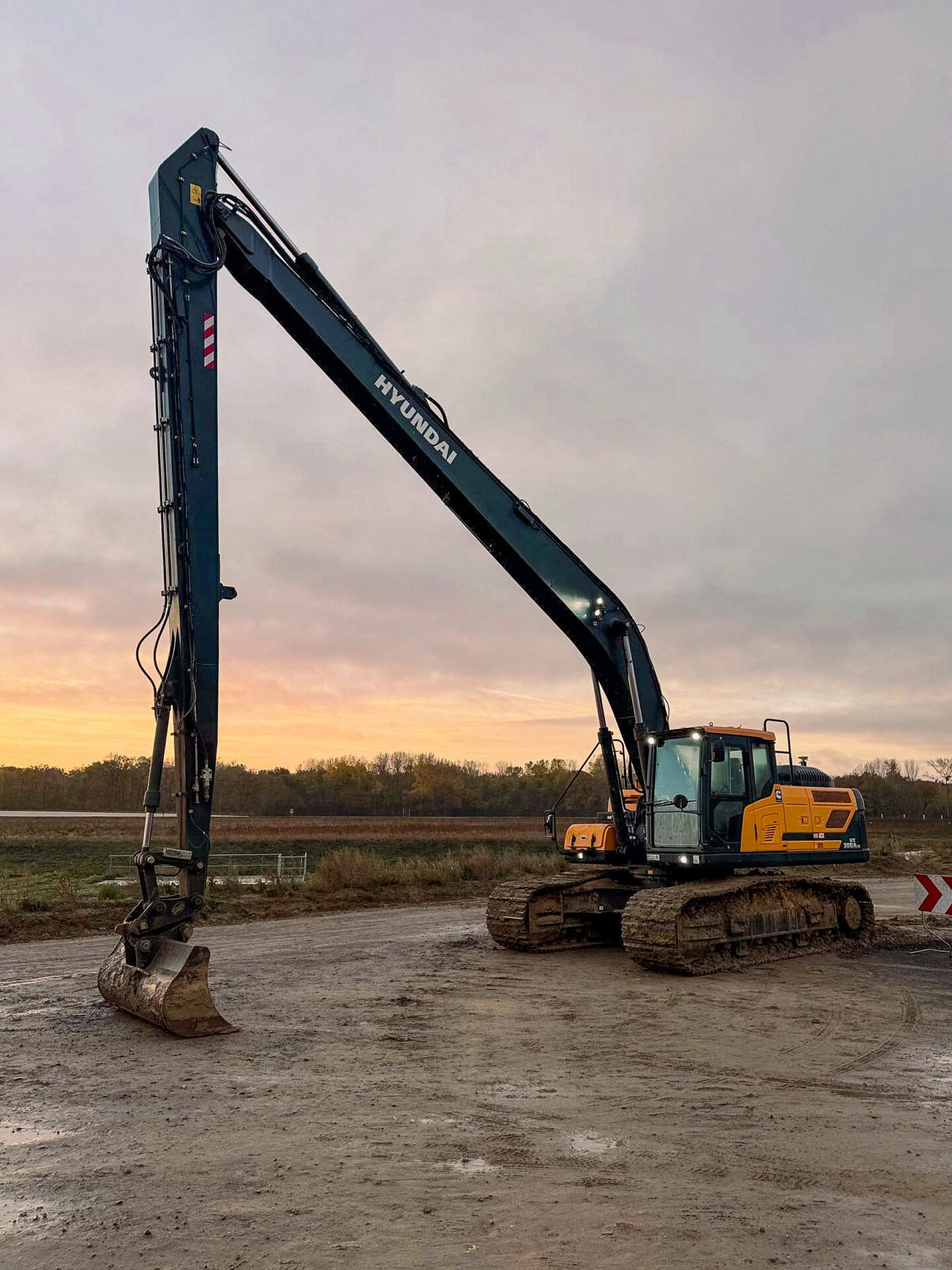 - Pelle 30T Long Reach : grande portée pour travailler depuis la berge sans entrer dans l’eau, idéale en milieux sensibles.